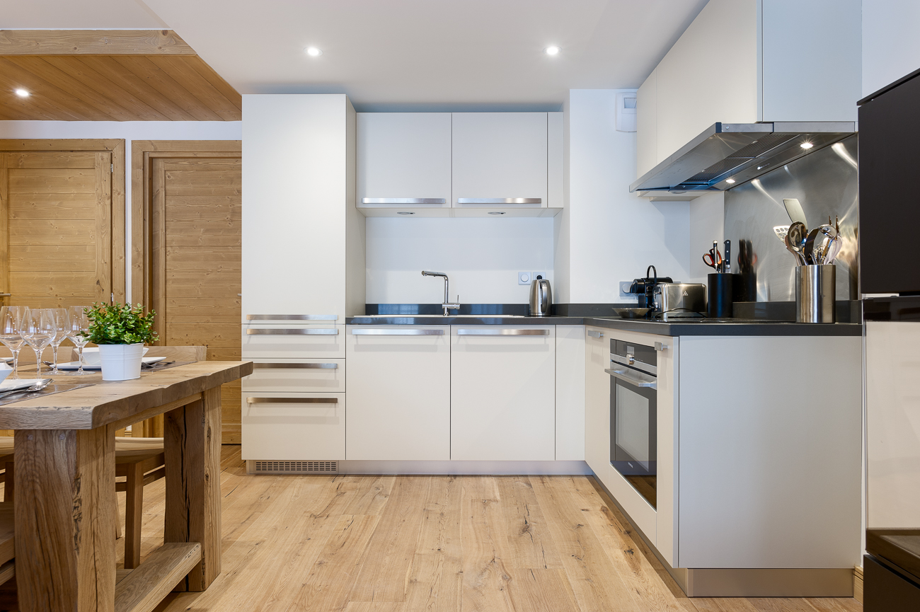 Il dispose de trois chambres avec un lit double ainsi que de deux salles de bains. L'espace de vie bénéficie d'un coin salon avec une télévision et un poêle à bois, d'une cuisine toute équipée et s'ouvre sur une terrasse aménagée avec table et chaises pour apprécier la vue. Cet appartement dispose d'appareils électroménagers tels qu'une machine à laver / sèche linge, un lave vaisselle, une machine à café Nespresso, etc.