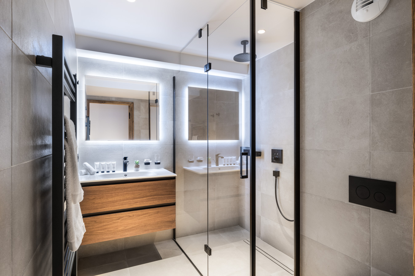 Il dispose de trois chambres avec un lit double ainsi que de trois salles de bains attenantes. Le petit + : un espace bien-être privé à l'intérieur de l'appartement, comprenant un hammam, un sauna, un bain à remous et une salle de bains supplémentaire.