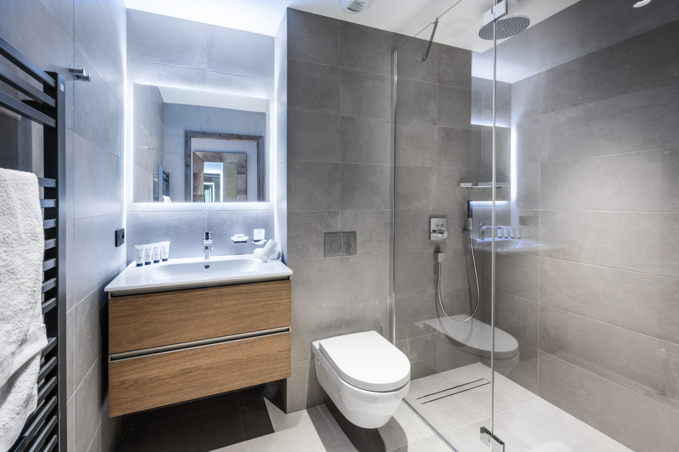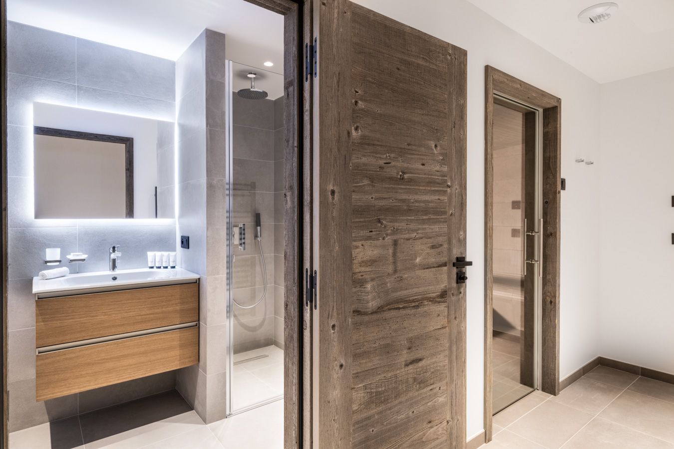 Il dispose de quatre chambres avec un lit double ainsi que de quatre salles de bains attenantes. La pièce de vie bénéficie d'un coin salon avec une télévision et une cheminée gaz ainsi que d'une cuisine ouverte toute équipée. Trois balcons viennent compléter l'espace dont un avec un bain à remous. Cet appartement dispose d'un ascenseur privé et d'appareils électroménagers tels qu'un lave vaisselle, une machine à café Nespresso, le nécessaire de cuisine, etc. Le petit + : une salle de fitness et un espace bien-être privé à l'intérieur de l'appartement, comprenant un hammam, un sauna et une salle de bains supplémentaire.