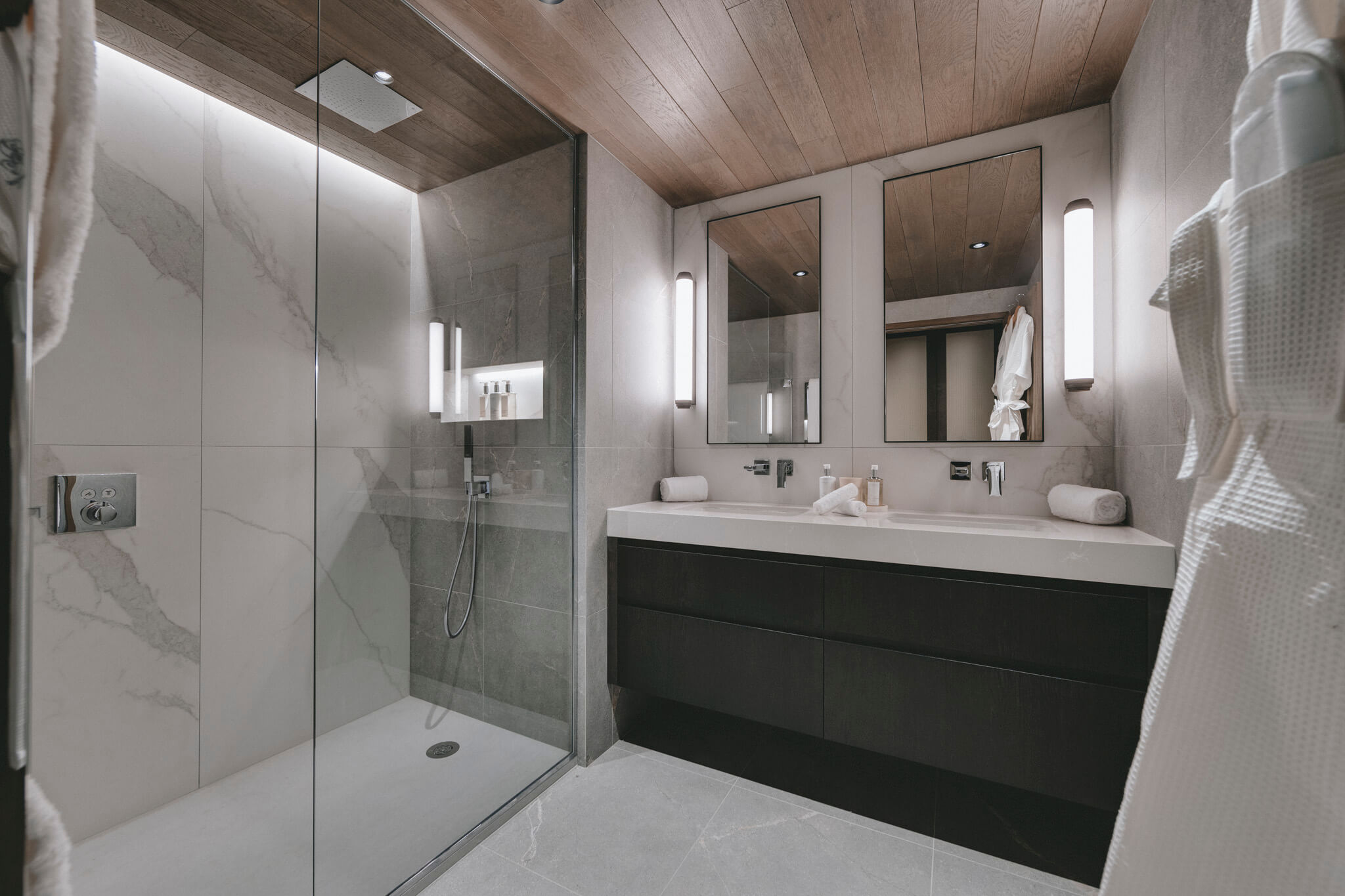 Le petit plus : un appartement privé, relié au lobby du chalet, vient parfaire cette propriété d’exception.
