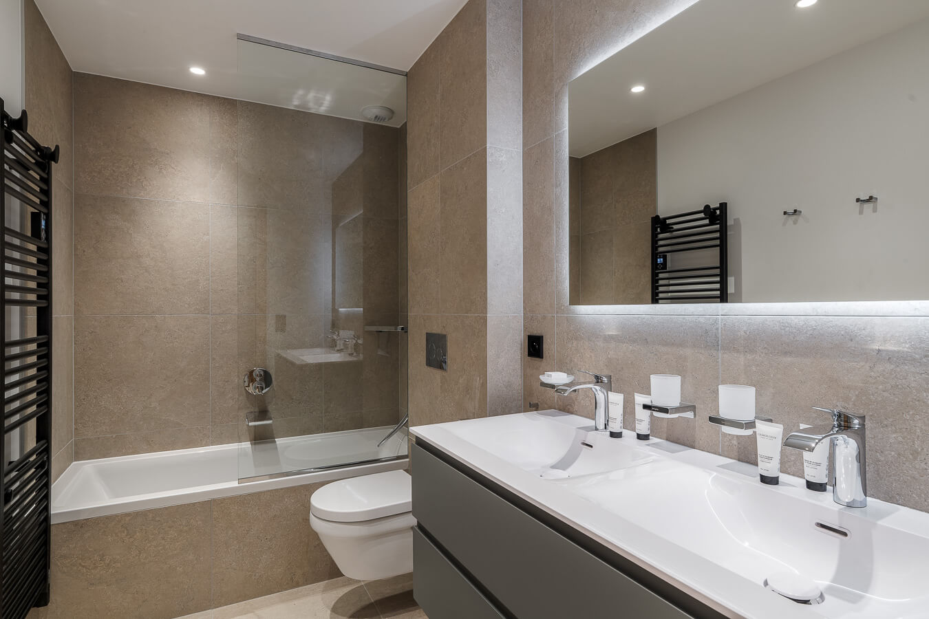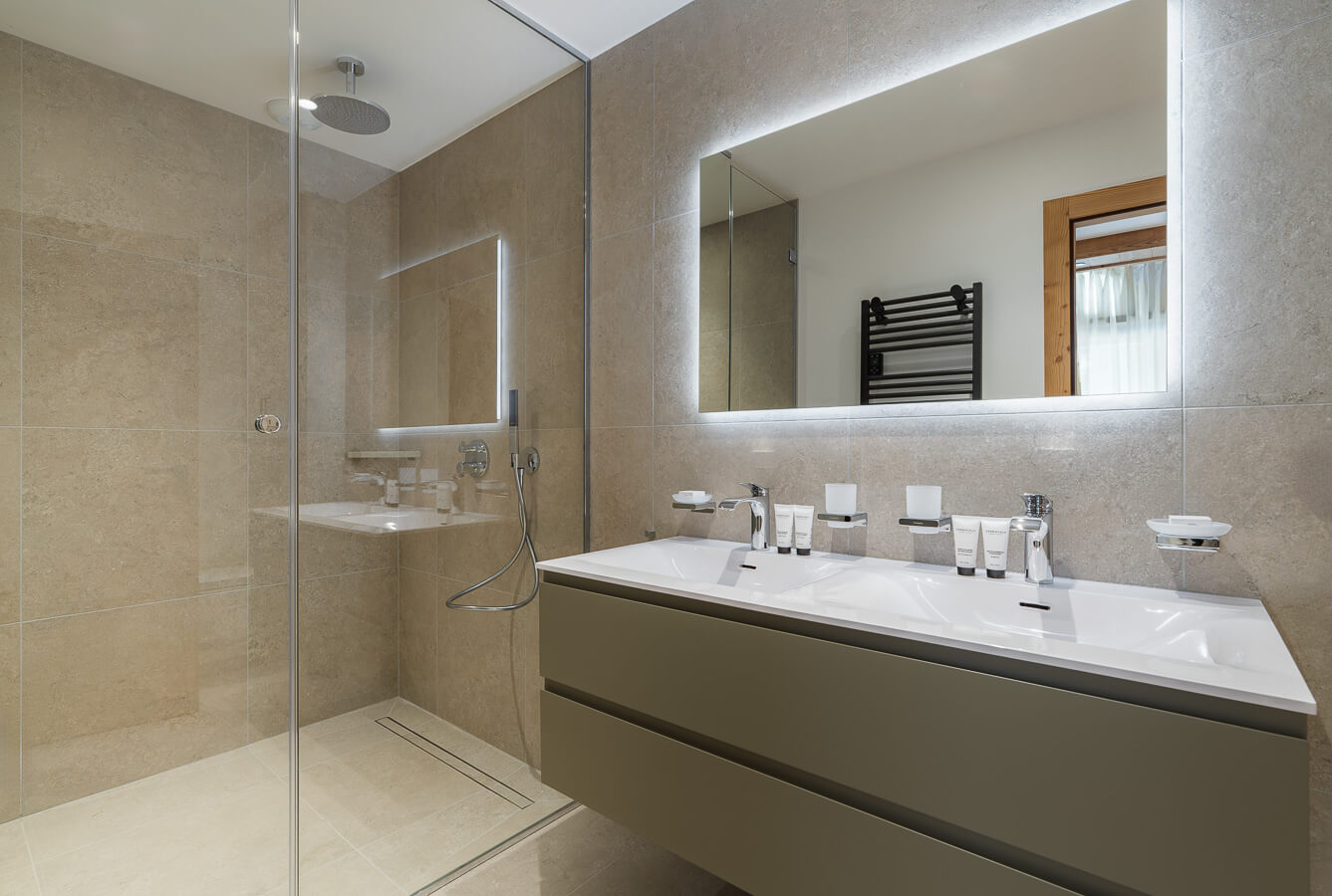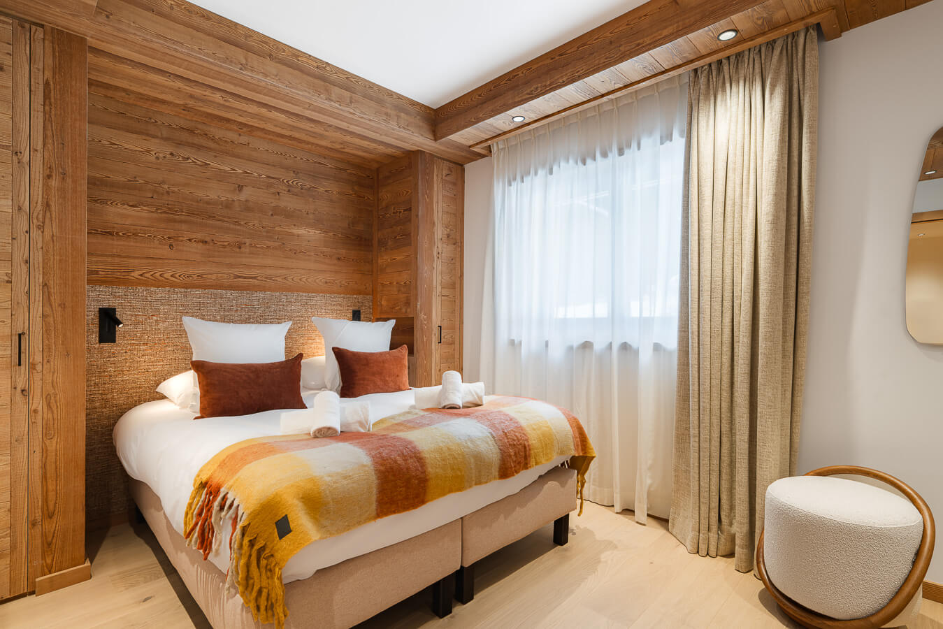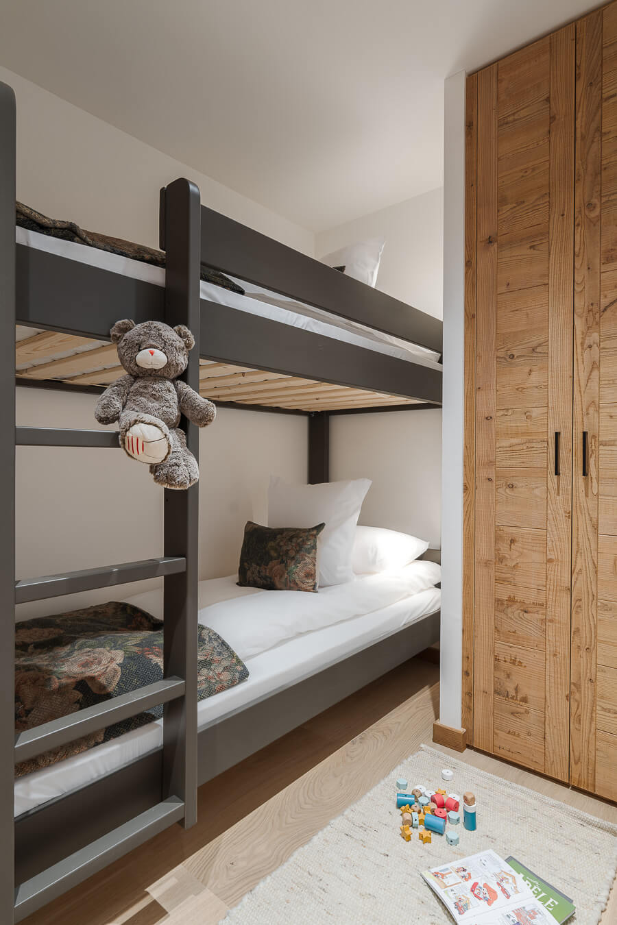 Cet appartement dispose de quatre chambres avec un lit double, d'une chambre cabine avec un lit superposé ainsi que de quatre salles de bains. L'espace de vie bénéficie d'un coin salon avec une télévision, d'une cuisine fonctionnelle toute équipée et d'une grande terrasse plus un balcon. Cet appartement dispose d'appareils électroménagers tels qu'un lave vaisselle, une machine à café Nespresso, etc.